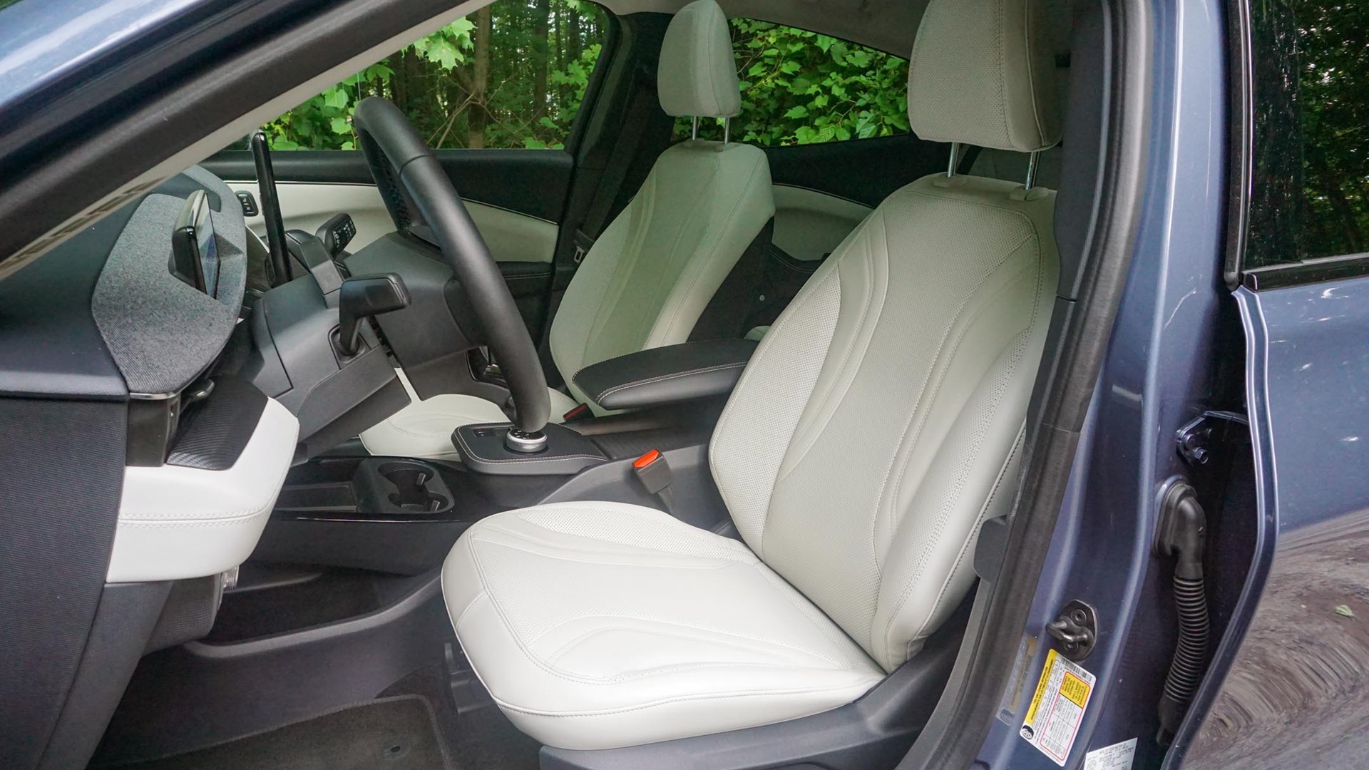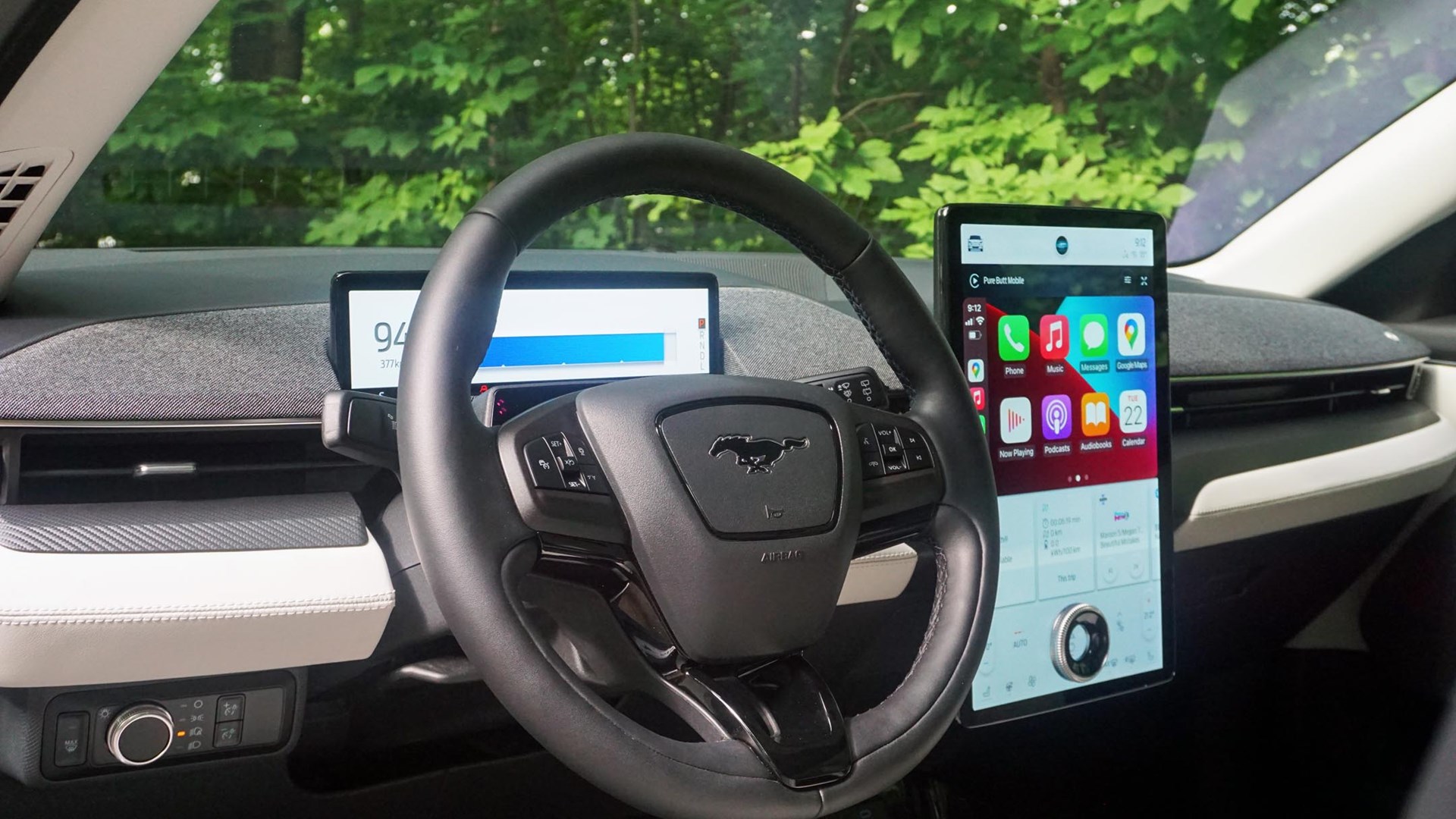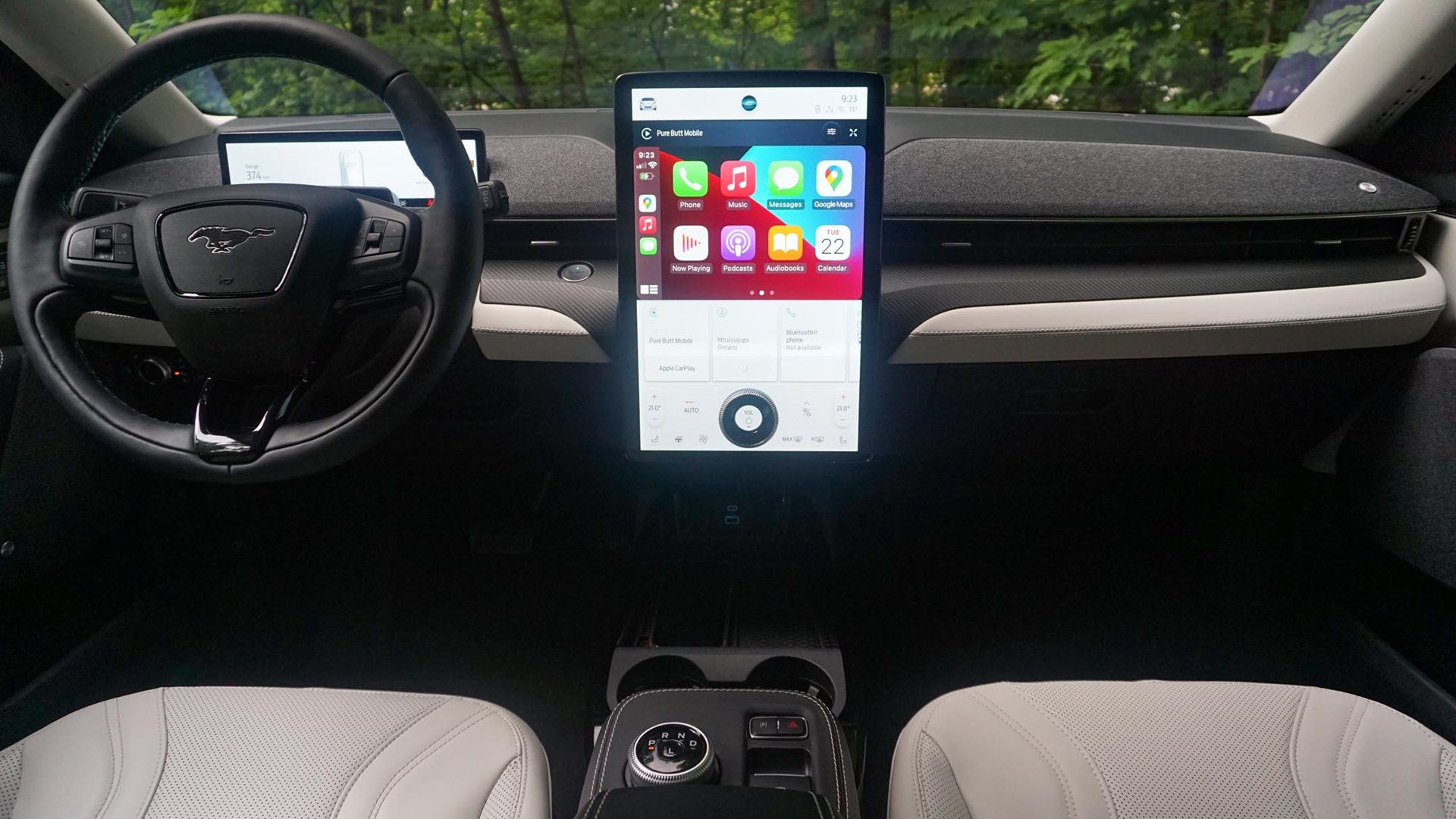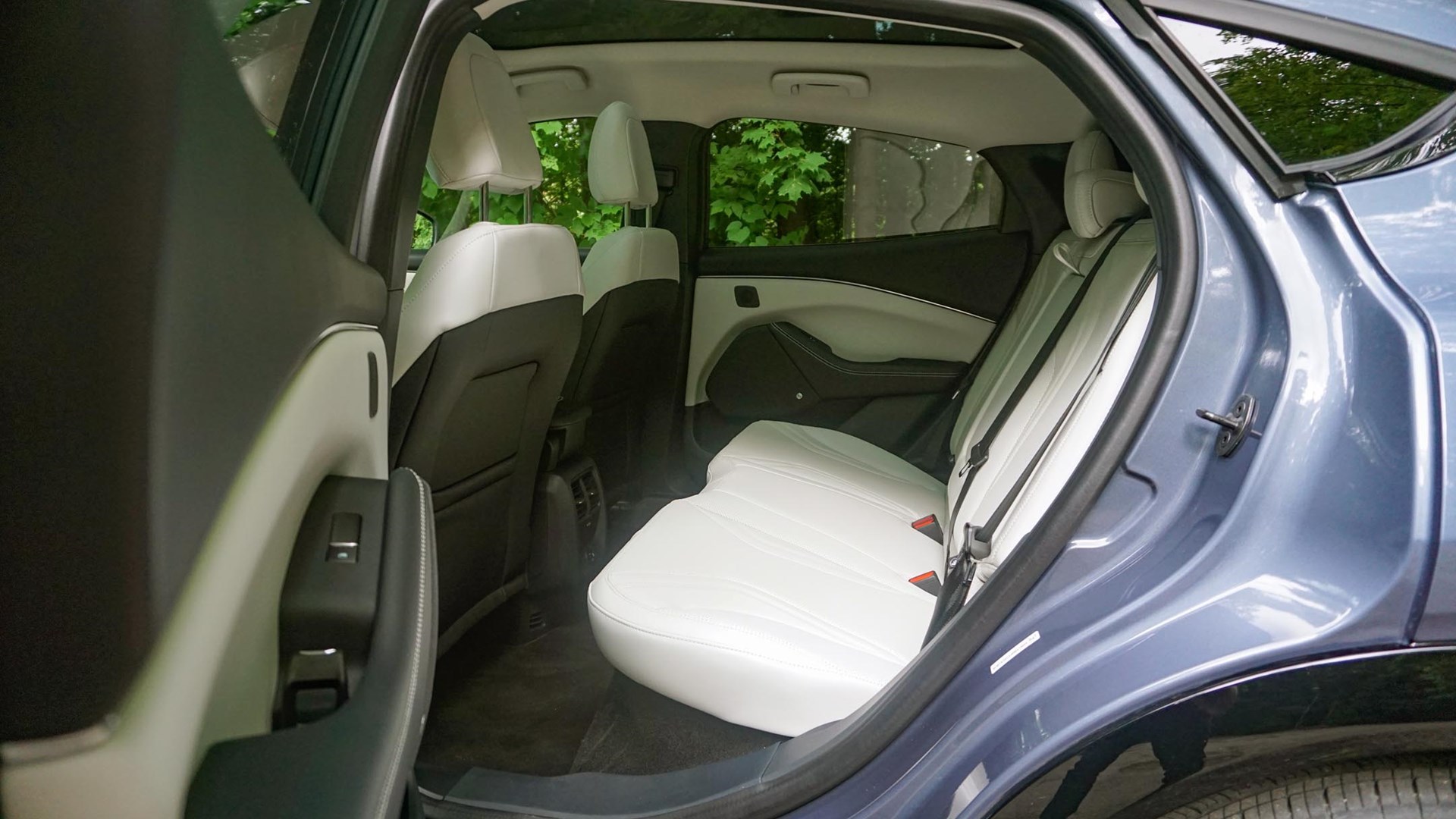 Ford has thrown a lot of other good tech at this EV’s entire lineup, with that vertical touchscreen, wireless charging, and Apple CarPlay and Android Auto all standard, as well as an app-based feature that allows a connected smartphone to work as the key (it wasn’t available during testing). Unfortunately, heated front seats aren’t included in the cheapest trim, requiring an upgrade package instead. And while a heated steering is included in the Premium trim, the front seats aren’t ventilated, nor are the rear seats heated. In those ways, it seems Ford held off on giving this halo product the full feature treatment that would surely help it stand apart.