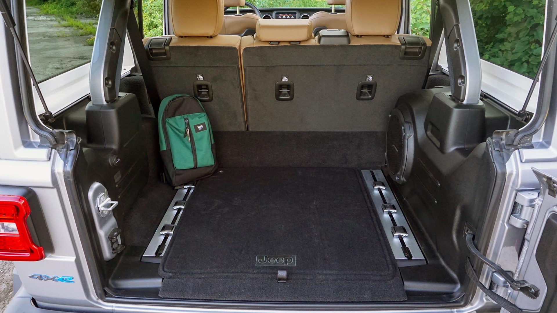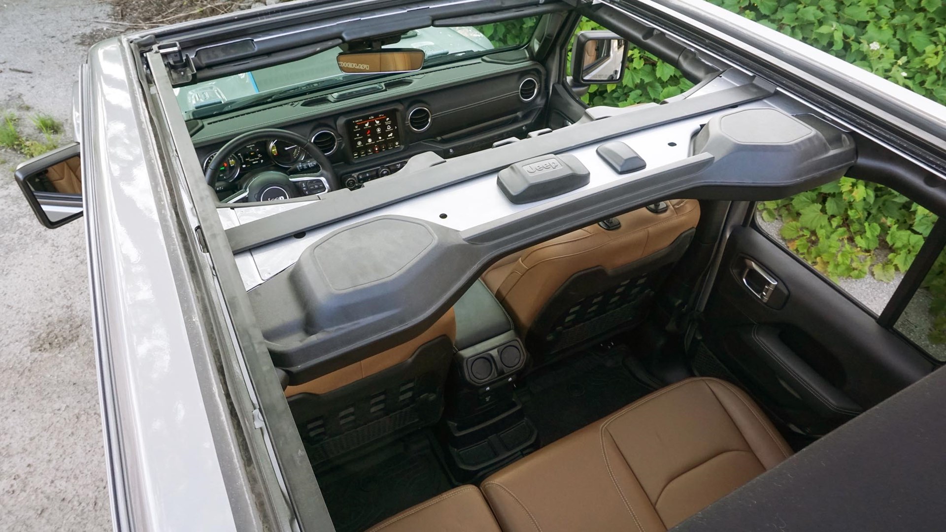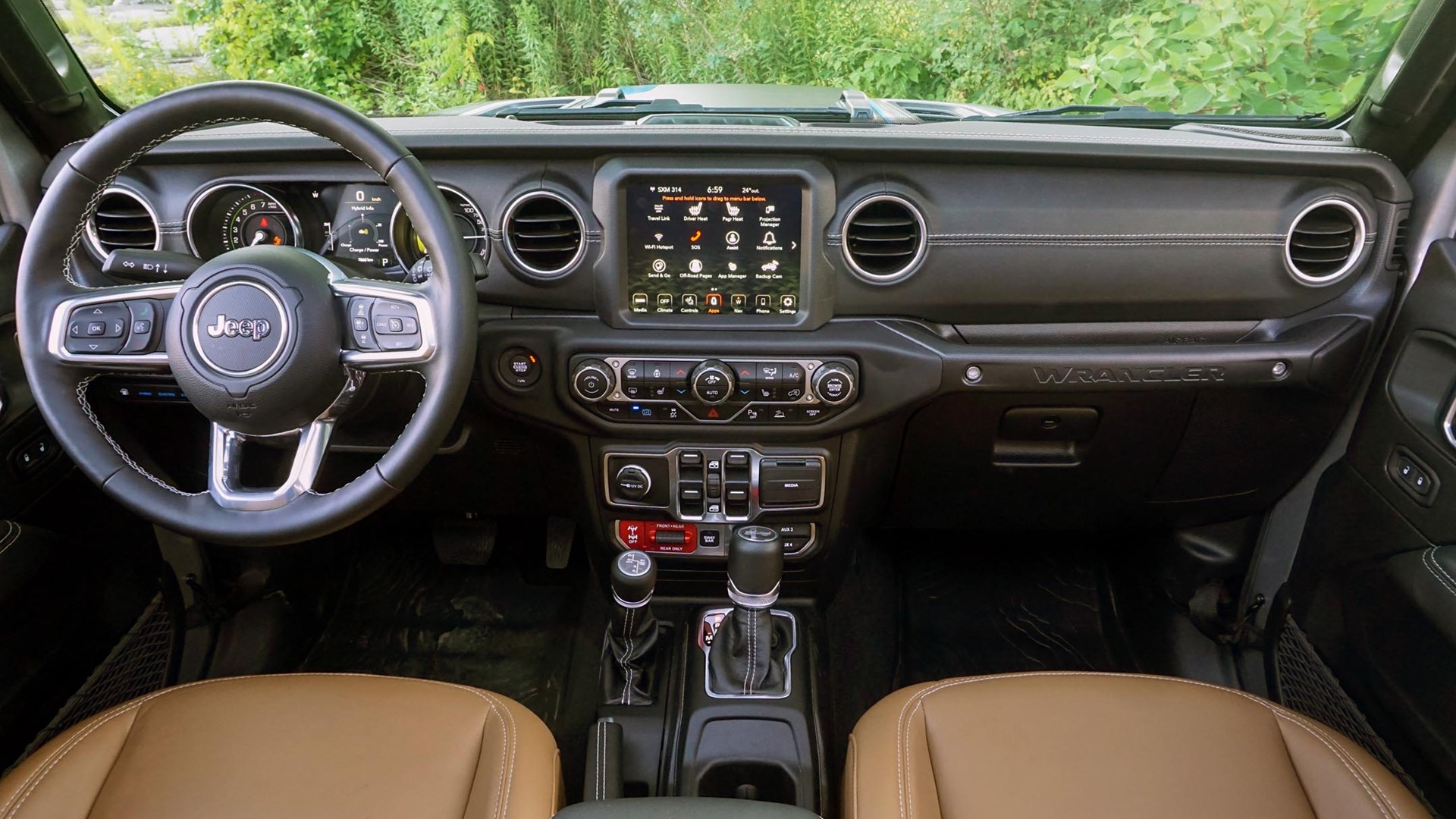 Beyond the obvious – it’s a plug-in hybrid (PHEV), after all – there’s something fascinating about an off-roader that’s simultaneously so capable and yet so quiet. Start it up on a hot summer day and the battery cooling system sounds as if there’s a passenger jet nearby preparing for takeoff. Every tread block squishes audibly as the meaty tires roll away from a stop, while the steering pump can be heard hissing and wheezing as the wheel is turned from lock to lock. These are just a few of this gas-electric Wrangler’s unique traits.