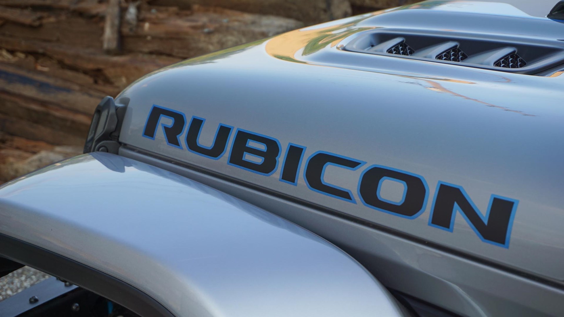 Blue recovery hooks front and rear, as well as blue highlights on the hood graphics and fender badges, and a discrete badge on the back are the only indicators that this runs on a combination of gasoline and electrons. Well, those and the charge port just ahead of the driver’s door. Otherwise, it’s a rugged Wrangler Rubicon inside and out, with styling cues to match.