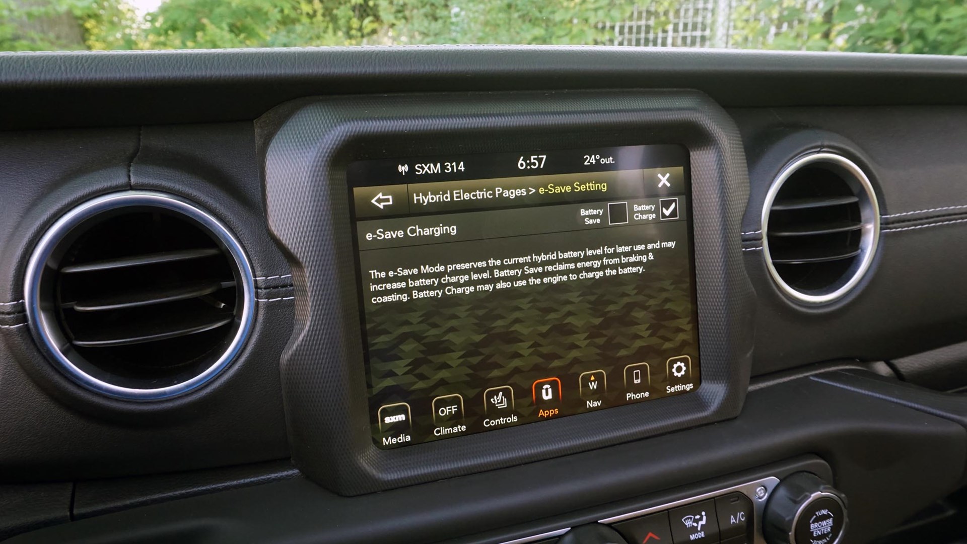 Run through an 8.4-inch touch display, the infotainment system also provides access to handy off-road extras like pitch and roll angle, drivetrain stats, and various gauges. Because it’s a PHEV, the touch display also provides access to pertinent information like scheduled charging and energy use. That’s in addition to the more typical stuff you might expect like built-in navigation and Android Auto and Apple CarPlay smartphone connections.