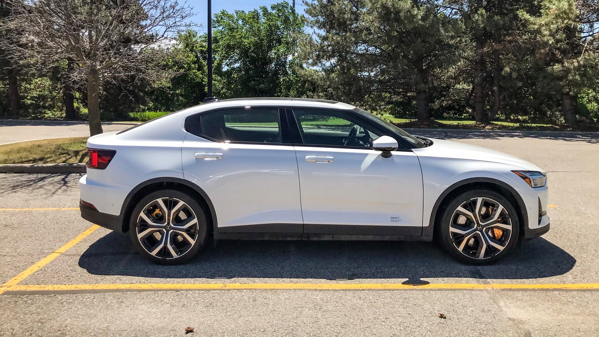 This tester was upgraded with Polestar’s Pilot, Plus, and Performance packages, which added $6,000 to the price. Pilot expands the safety feature functionality; Plus kits out the stereo, sunroof, wireless charging, and fancy fabric inside; and Performance upgrades the brakes, wheels, suspension, and tires.