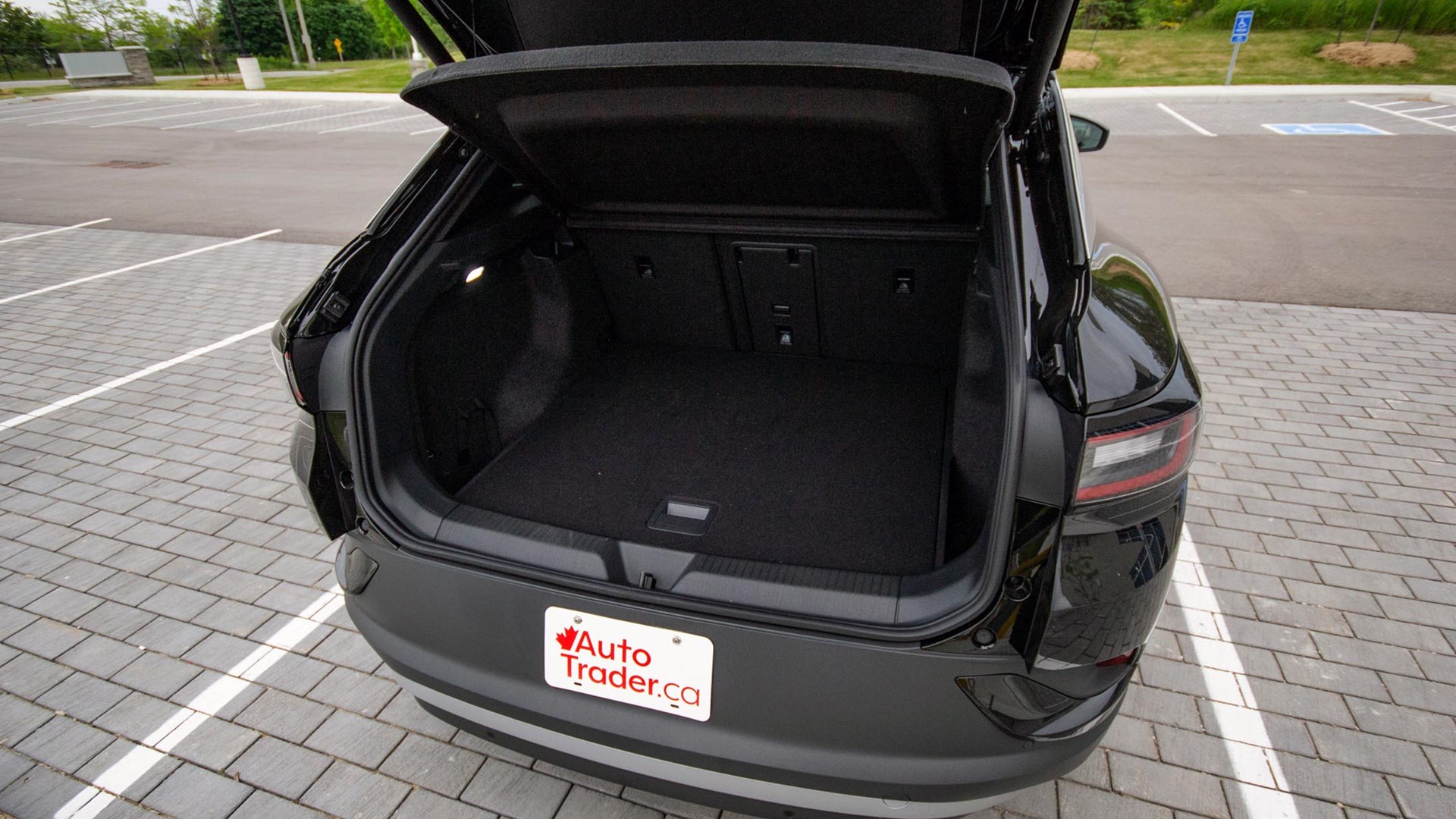 When it comes to everyday usability, the VW ID.4 is very practical. The spacious, smartly packaged interior offers plenty of room for both front and rear occupants, while the minimalist styling and flat floor help give the cabin a light, airy and open feel. It also has 1,818 L of cargo space with the back seats folded, slightly less than the Tesla Model Y but a tiny bit more than the Ford Mustang Mach–E.